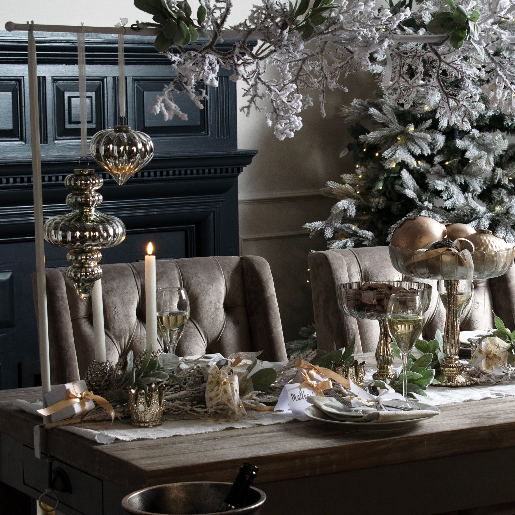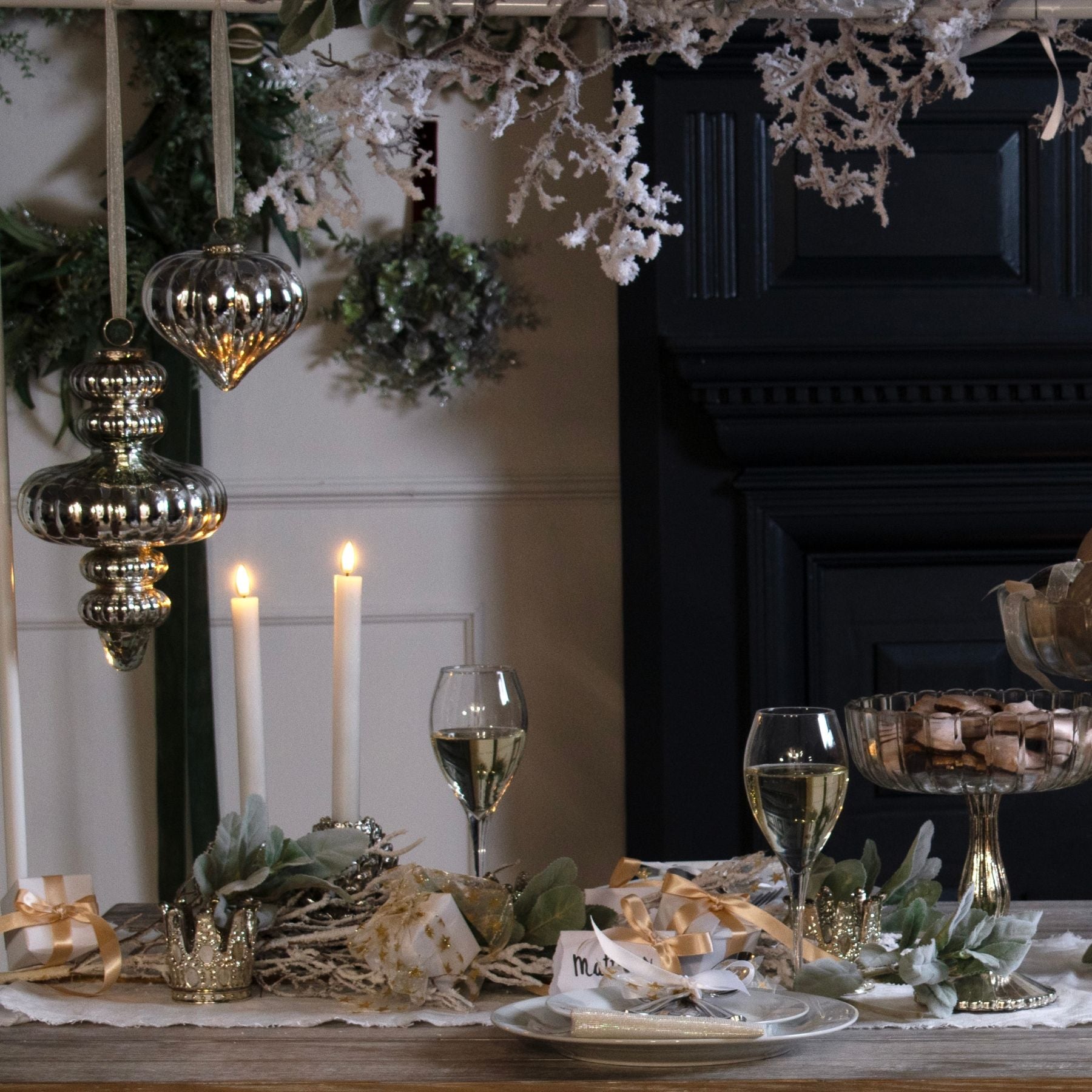 - Pewter-like finish adds a subtle shimmer, bringing depth and refinement to any festive arrangement