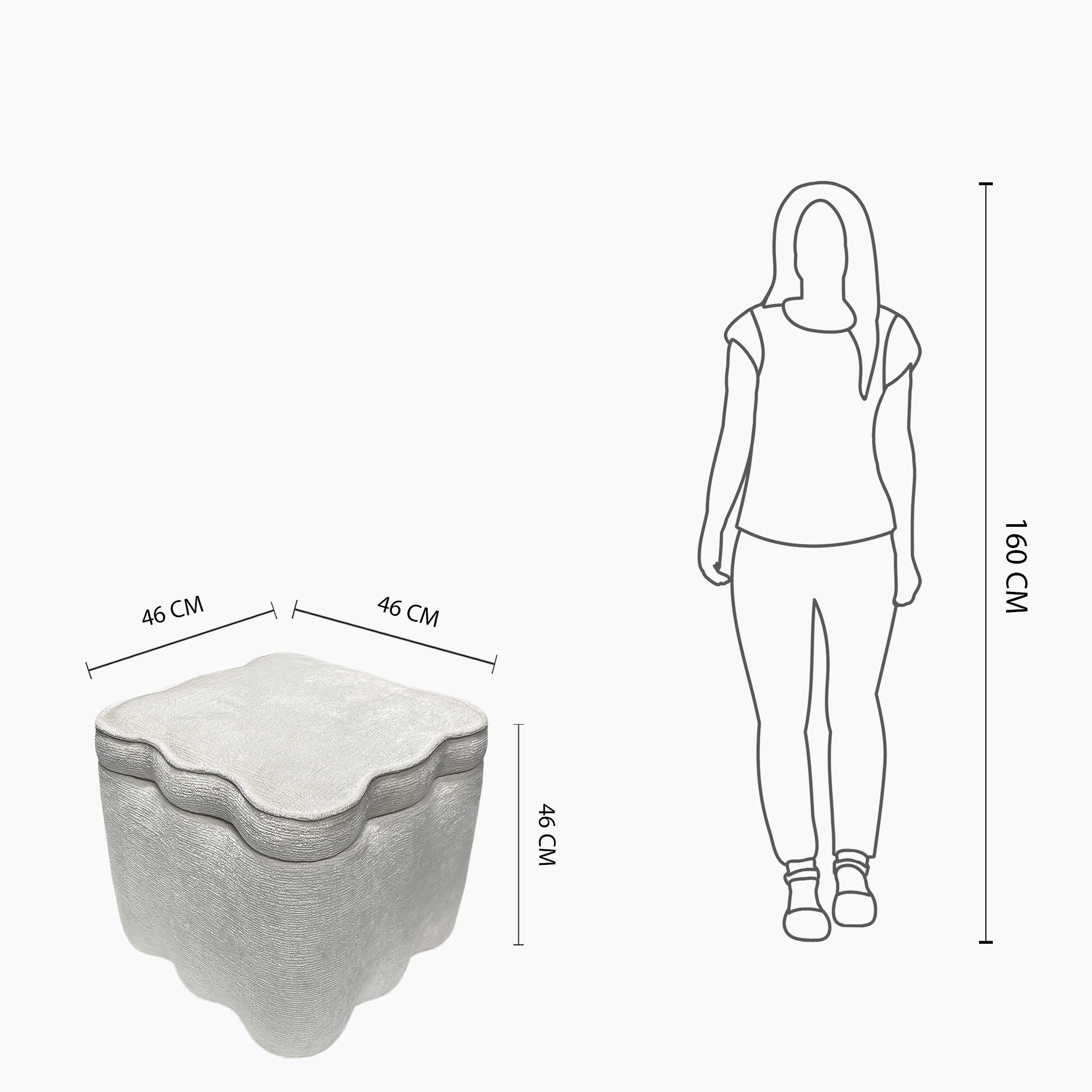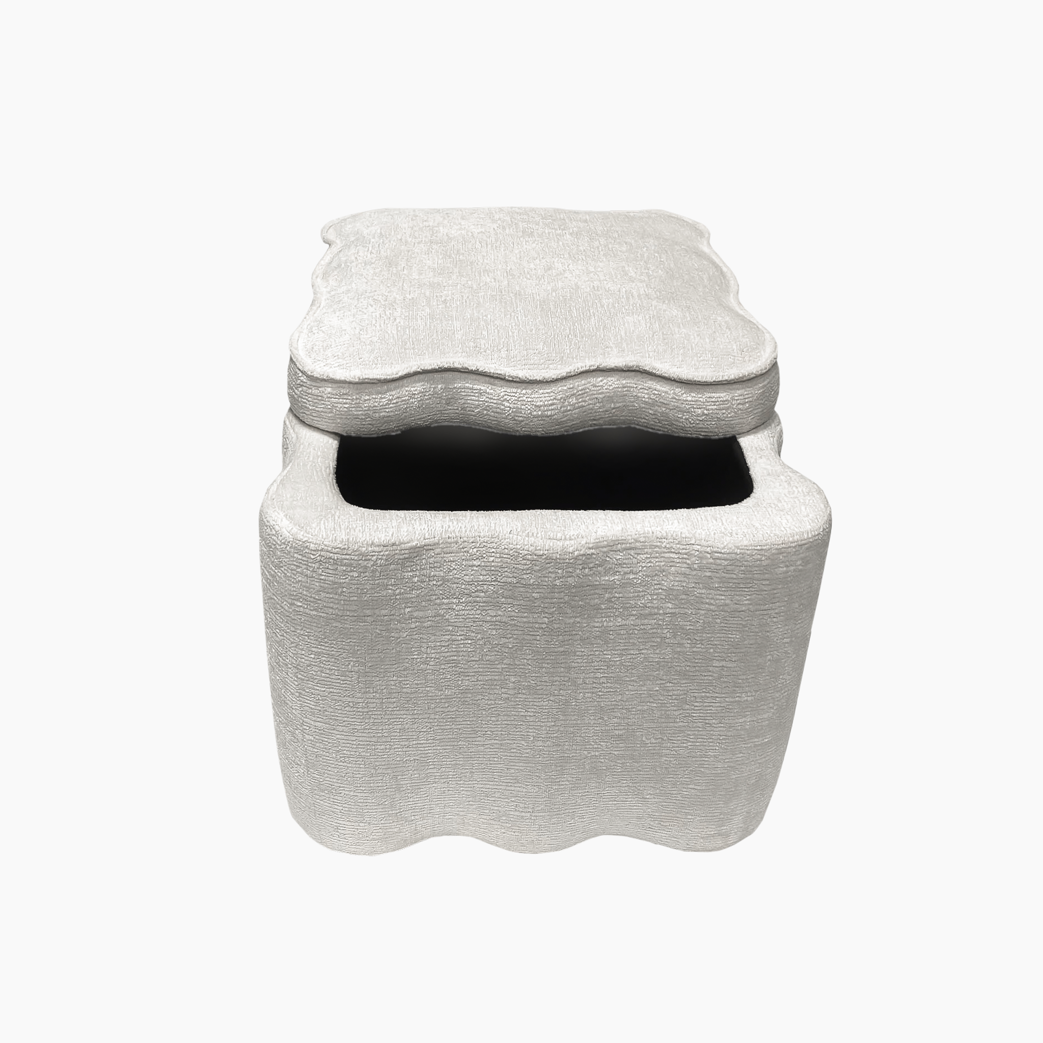 The overall aesthetic of this ottoman is defined by its ability to merge high style with practical functionality. The distinctive shape, with its waved edges, avoids the starkness of a simple square, lending an air of bespoke craftsmanship and visual interest to your space. The plush top is ideal for sitting or propping up your feet, while the discreetly placed internal compartment provides a valuable home for throws, magazines, or remote controls. The durable fabric ensures the piece can withstand regular use, making it a reliable fixture in high-traffic living areas. Its refined colour and comfortable feel make it an appealing addition to any room that requires both a sophisticated accent and everyday utility.