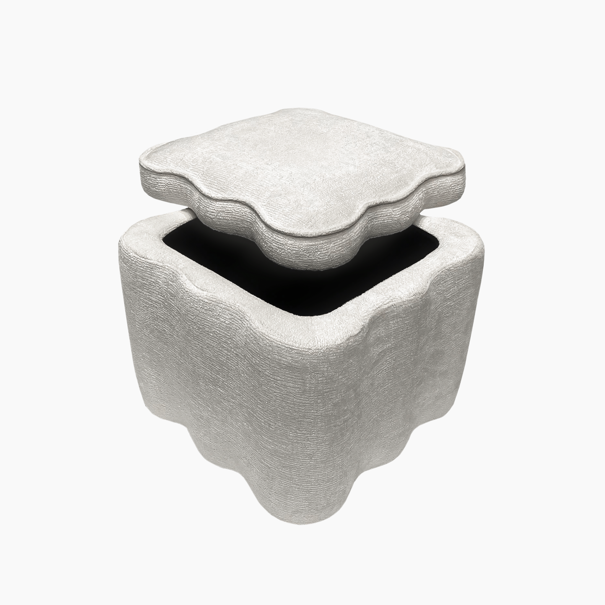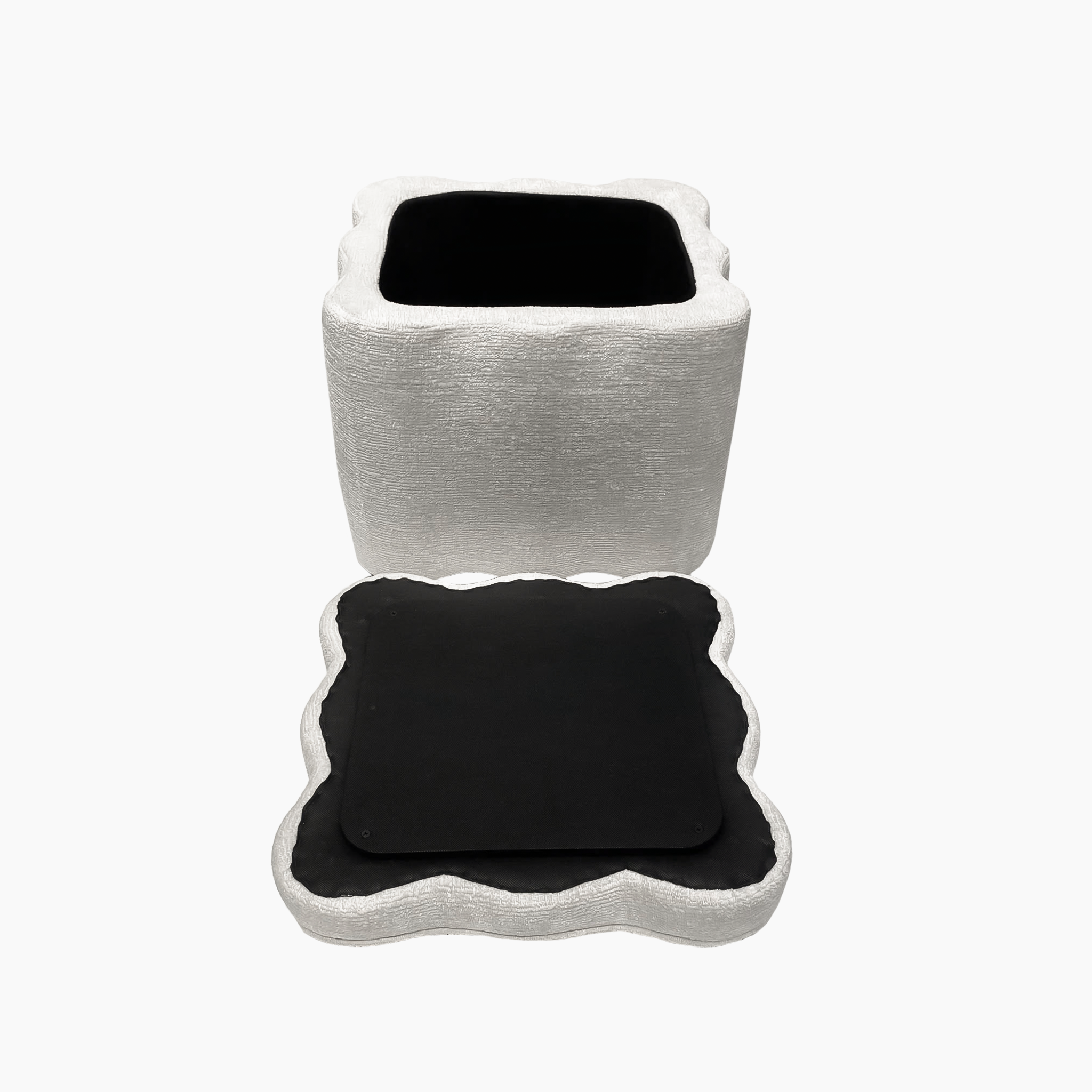 The Lee ottoman introduces a unique blend of playful form and exceptional everyday function to your Home Furniture collection. Upholstered in a durable polyester fabric, its distinctive square silhouette features gently waved edges that soften the look, giving it a light, sculptural presence. This versatile piece offers an aesthetic that immediately draws the eye, providing both a comfortable occasional seat and an effortless styling accent. The elegant ivory tone ensures it complements a wide variety of contemporary and transitional interior palettes. Its thoughtful design allows it to enhance the atmosphere of a living room or bedroom while providing essential, hidden utility.